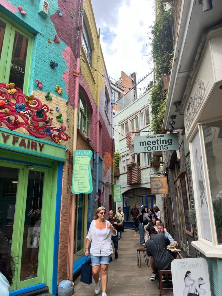 A pochi passi da Covent Garden si trova la stradina di Neal’s Yard , un vicoletto unico nel suo genere nel cuore di Londra. Ci sono casette colorate, con piante e fiori che rendono il tutto una delle zone più fotogeniche e instagrammabili di Londra. Rimarrete sorpresi dalle facciate e dai negozietti dipinti con colori vivaci. Troverete vari negozi sul cibo sano e di cosmetici e sarà un momento ideale per un break e prendere un tea o un caffè. E’ un posto conosciuto ovviamente dai londinesi ma ancora poco conosciuto dai turisti, e se vi trovate a Covent Garden dovrete assolutamente andare a visitare Neal’S Yard!