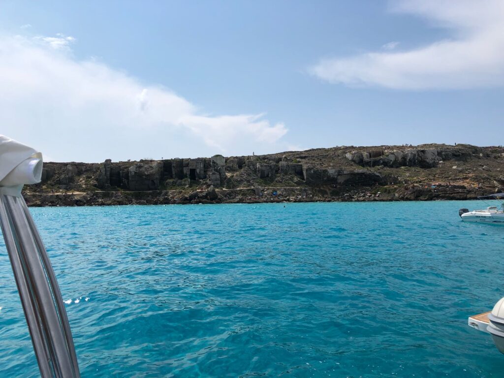 Uno tra i più buoni lo mangiai ad Erice, paese natale del fisico e scienziato Antonino Zichichi. E’ un borgo a 750 metri sul livello del mare, dove si può godere di una vista magnifica su tutto il golfo, tra i suoi vicoletti antichi e il castello che domina il paese. Andando in vacanza però a San Vito Lo Capo non potevo non visitare le Egadi: Favignana, Levanzo e Marettimo. Visitarle singolarmente però richiedeva tempo e soprattutto una spese in più. Così trovai la soluzione perfetta: Egadi Boating. E’ un società che organizza gite giornaliere con pranzo a bordo alle Egadi. Un gruppo di 2-3 gommoni da 9 metri e massimo 8-9 persone a bordo partimmo da Trapani intorno alle 10 del mattino. Prima tappa fu Cala Rossa: una vera e propria piscina, fu uno dei bagni più belli mai fatti, l’acqua turchese e trasparente anche a 3-4 metri di profondità. Le barche sembravano sospese in aria tanto che l’acqua era limpida. Dopo andammo a Cala Azzurra, un altro paradiso ma con coloi un po’ più scuri. Restammo tutto il tempo che volevamo non avevamo limiti di tempo o altro. A pranzo mangiammo nel porto di Favignana: arancini, pasta fritta, pane cunzato di tutto e di più. Dopo pranzo avevamo circa due ore per girare Favignana, un corso e la piazzetta caratteristica, con sfondo la vecchia tonnara.