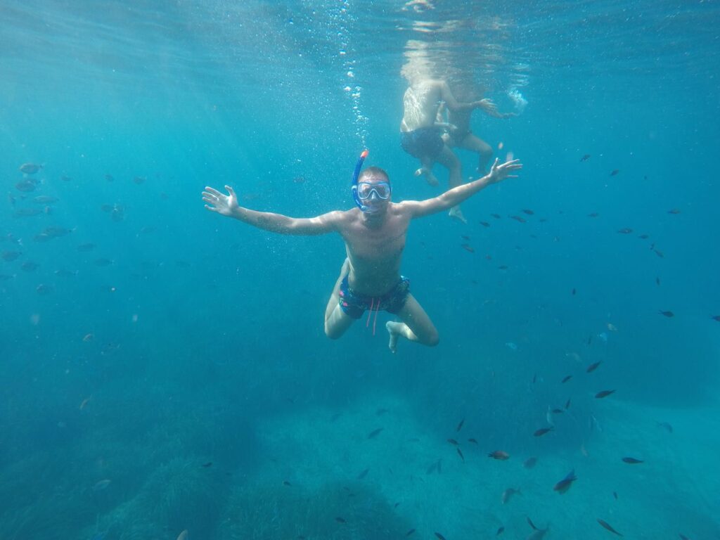 Dopo la sosta andammo alla grotta degli Innamorati a Marettimo, una mini esplorazione all’interno di questa grotta, con un piccolo passaggio di nemmeno due metri, e poi si risaliva in superficie: ricordo ancora lo sfondo azzurro che avevo sopra i miei occhi prima di risalire. Ma come sempre il meglio arriva alla fine. L’ultima tappa fu l’isola di Levanzo, ci fermammo poco dopo il porto vicino alla costa. Presi di nuovo la maschera e nuotai quasi per tutta la costa, rimanendo incanto per lo spettacolo di pesci, colori e tutto quello che c’era sott’acqua. La giornata si concluse con il ritorno al porto di Trapani al tramonto, fu davvero una delle giornate più belle della mia vita: quel mare, quella libertà, stare a contatto sott’acqua con tutto quel mondo era davvero impagabile. Con la tristezza nel cuore la vacanza era al termine, ma a distanza di anni il mio cuore è rimasto ancora lì in Sicilia, dove spero di ritornare al più presto e vi consiglio vivamente di visitare soprattutto quella zona.