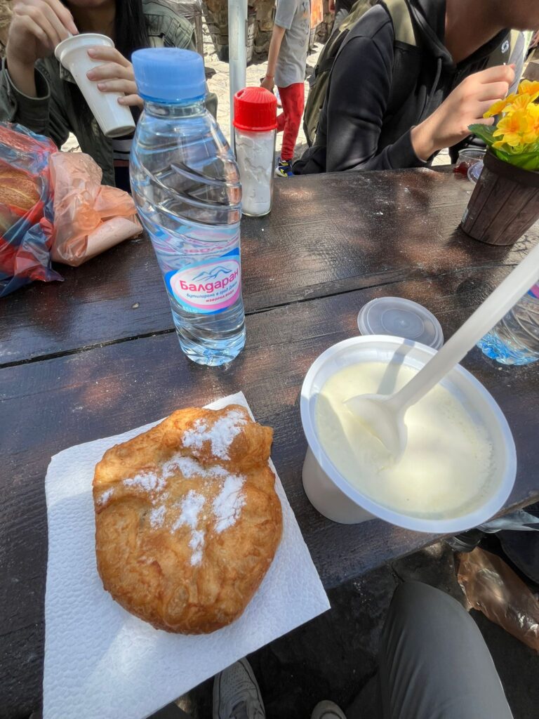 Dopo la visita interna abbiamo avuto circa un’ora di tempo libero dove abbiamo circondato il monastero sia all’interno e all’esterno. Proprio fuori c’era un torrente carico di acqua fresca delle montagne, e subito dopo il piccolo ponte sul fiume c’erano delle bancarelle e soprattutto un forno dove abbiamo gustato lo yogurt di capra bulgaro, infatti la Bulgaria produce uno yogurt squisito, e poi una specie di dolce frittella con zucchero a velo sopra: mekitsa. Davvero squisiti entrambi, e non contenti provammo altre piccole ciambelline tipiche fritte ricoperte da nutella e marmellata di fragole. Molto molto buone. Ammirando ancora i boschi e i paesini rurali lungo il tragitto arriviamo a Sofia intorno alle 17.