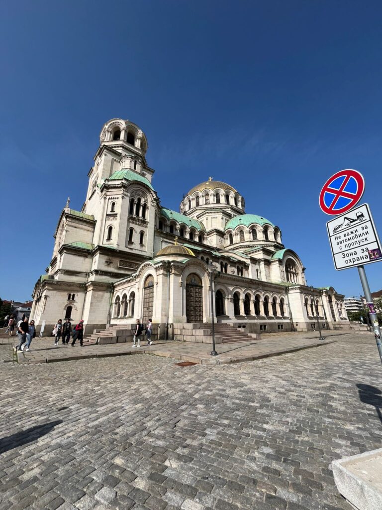 Da qui iniziava la nostra visita alla città visto che venerdì siamo arrivati di notte e avevamo speso tutta la mattina e mezzo pomeriggio del sabato per l’escursione. La prima tappa fu visitare la cattedrale Nevski. Da dentro ad essere sincero sembra ancora più grande tra affreschi altissimi, navate molto alte e un ampio spazio centrale dove a differenze delle chiese non c’erano le panche, ma una specie lunga panchina con posti singoli, in legno lungo alcuni perimetri della cattedrale. Incuriosito da una cattedrale ortodosso e vedendo i fedeli con il loro segno della croce diverso da nostro rimango fermo ad osservare l’ennesima diversità che avevano visto durante i miei viaggi i miei occhi, e ogni volta ne resto sempre affascinato, senza giudicare ma solo fare tesoro di tutte queste cose nuove. Avevo già visto prima di partire che a Sofia si poteva girare tranquillamente a piedi, infatti dopo aver lasciato la cattedrale, a circa 5 min c’era un’altra attrazione che mi incuriosiva tanto, la chiesa russa di San Nicola. Anche questa molto suggestiva con i campanili che ricordano un po’ la piazza rossa a Mosca. Entrammo e c’era una funzione in corso. In punta di piedi per non disturbare ascoltavo i cori e e le parole del prete osservando scrupolosamente i fedeli, ammirando gli affreschi interni e lo stile, è stata la prima volta che ho visitato una chiesa russa.